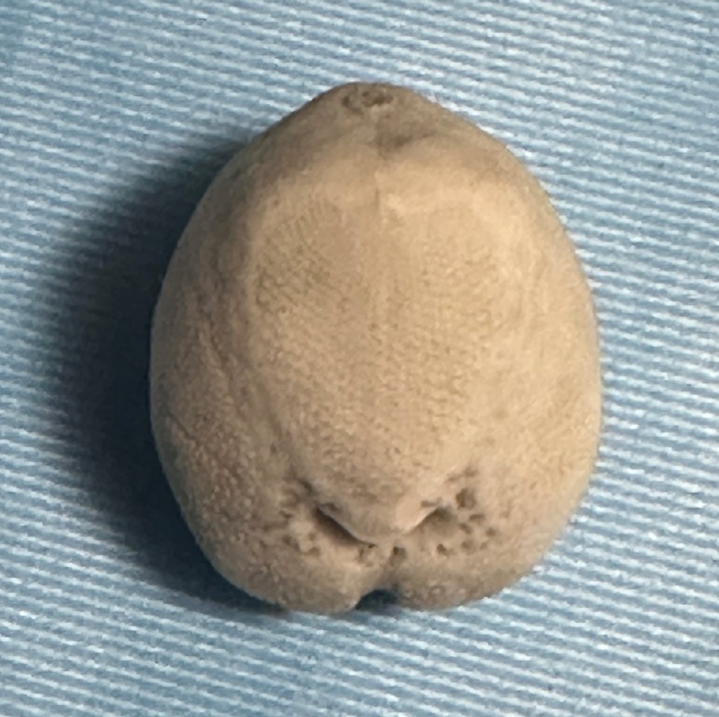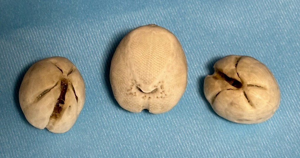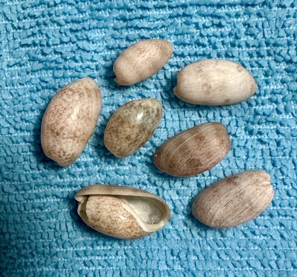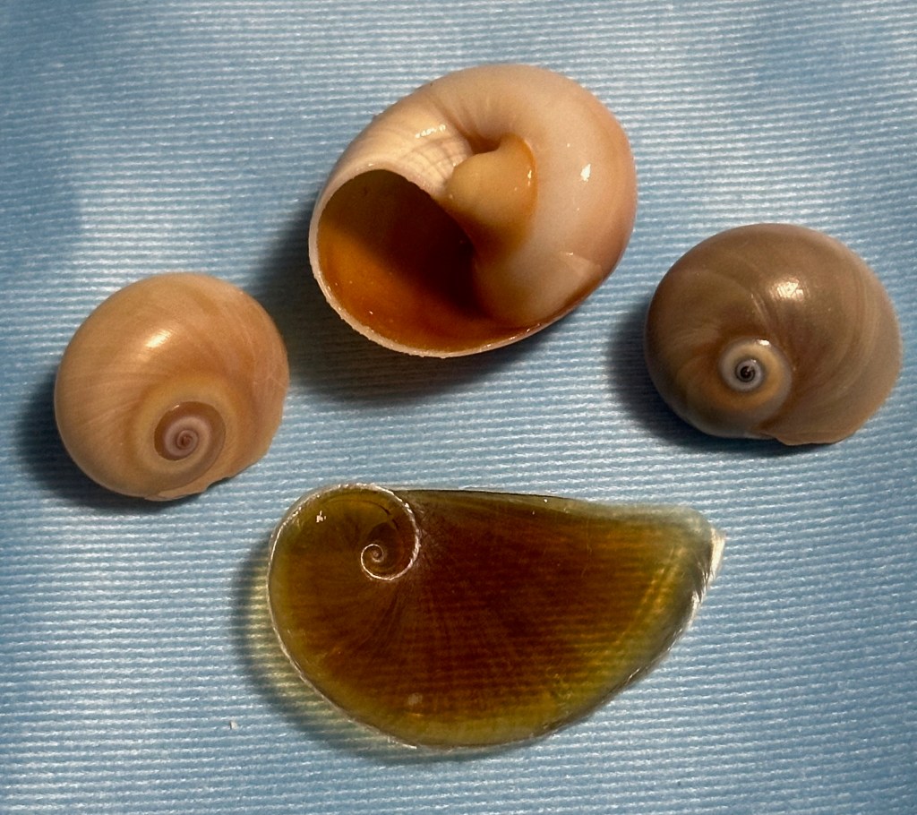 As for the highlight of the day, I have two favorites and both were firsts for me. I was thrilled to find a Sea Potato, the test of a Heart Urchin (related to sand dollars). While the slightly curved, amber half moon that caught my eye, turned out to be a Shark Eye Moon Snail operculum (the door to their shell).