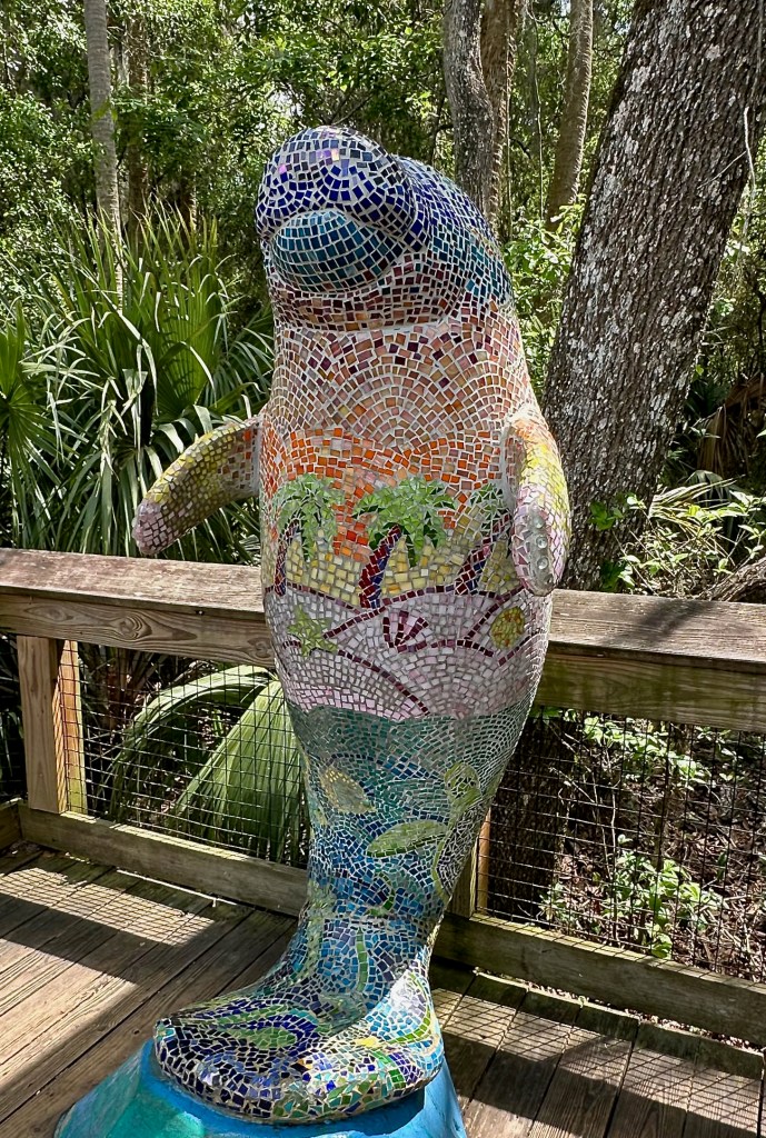 The past month of warm weather increased the water temperature in the St. Johns River, so there weren’t any manatees hanging around. Since I knew that they just take advantage of the 72° water during cold spells, I wasn’t disappointed (though other visitors were). Manatees, despite their considerable girth, are unlike seals and whales in that they do not have blubber so they rely on warmer water during the winter.