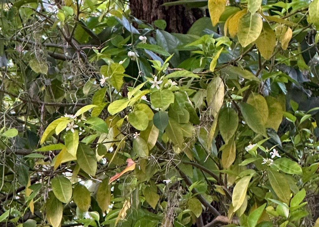 In 1856, Louis P. Thursby bought the land at the confluence and opened Blue Spring Landing, one of the first steamboat landings on the river. He and his family also planted one of the area’s first orange groves. I caught a whiff of orange blossoms while walking the boardwalk. Since it is my absolute favorite smell, I circled around looking for the tree. I finally spotted the scraggly tree, fighting through the shade of a massive oak. Amazing when one considers it’s a feral descendant of the Thursby’s orchard that was planted 170 years earlier!