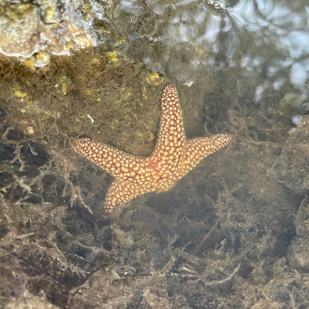 But the highlight of the day was this smallish sea star (Echinaster sp.). Unlike the rocky coastline in the Pacific Northwest where I regularly spotted sea stars during low tide, I rarely encounter them here. This shallow, sandy coast offers less suitable habitat (there are offshore reefs but as of yet I haven’t explored those). It was a treat to watch this one shuffle among the rocks in an effort to stay under the outgoing tide.