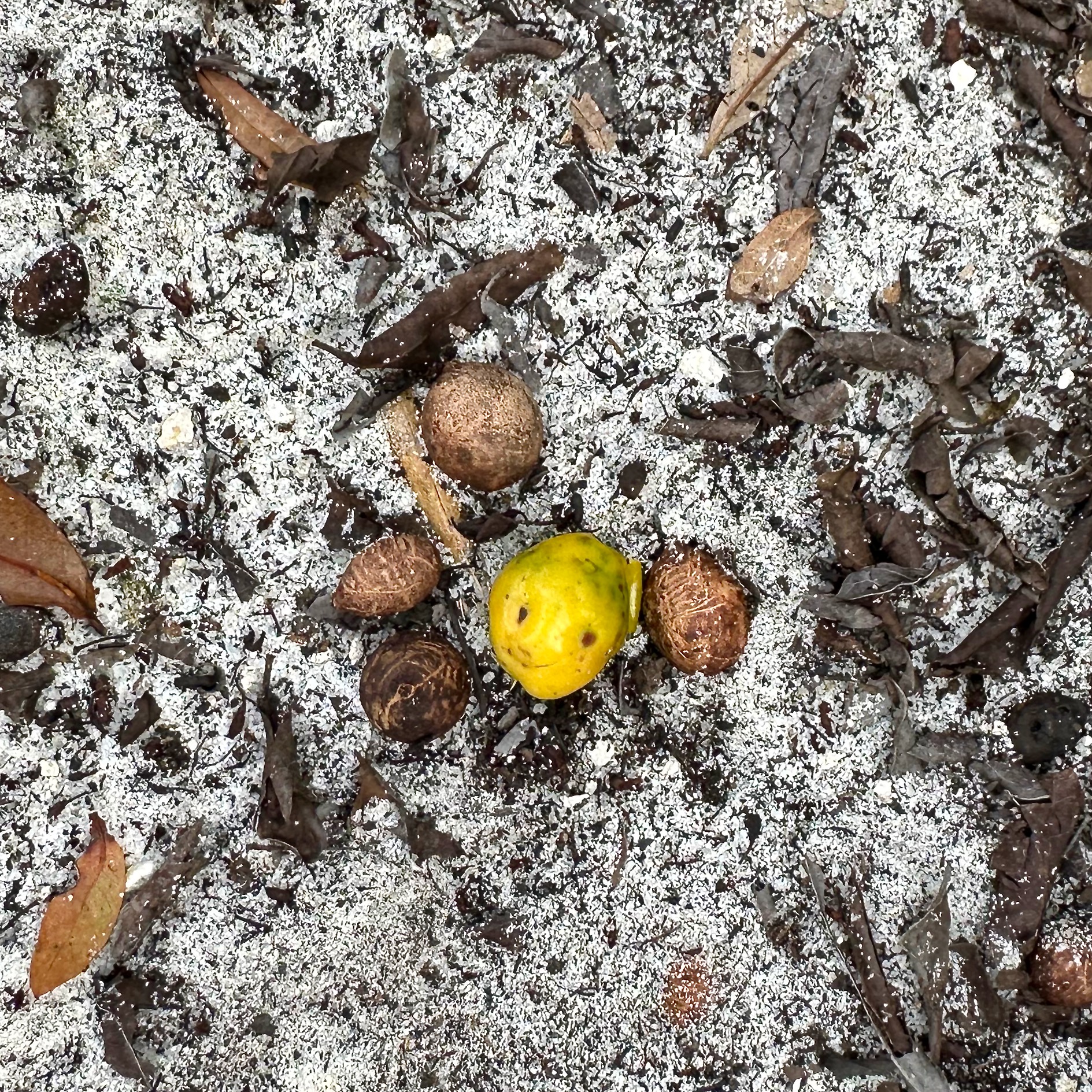 Further down the trail was a Hog Plum tree (Spondias mombin) with a few late-season fruits still hanging on. While the small fruit is edible, a quick nibble proved it was the opposite of a sugar plum.