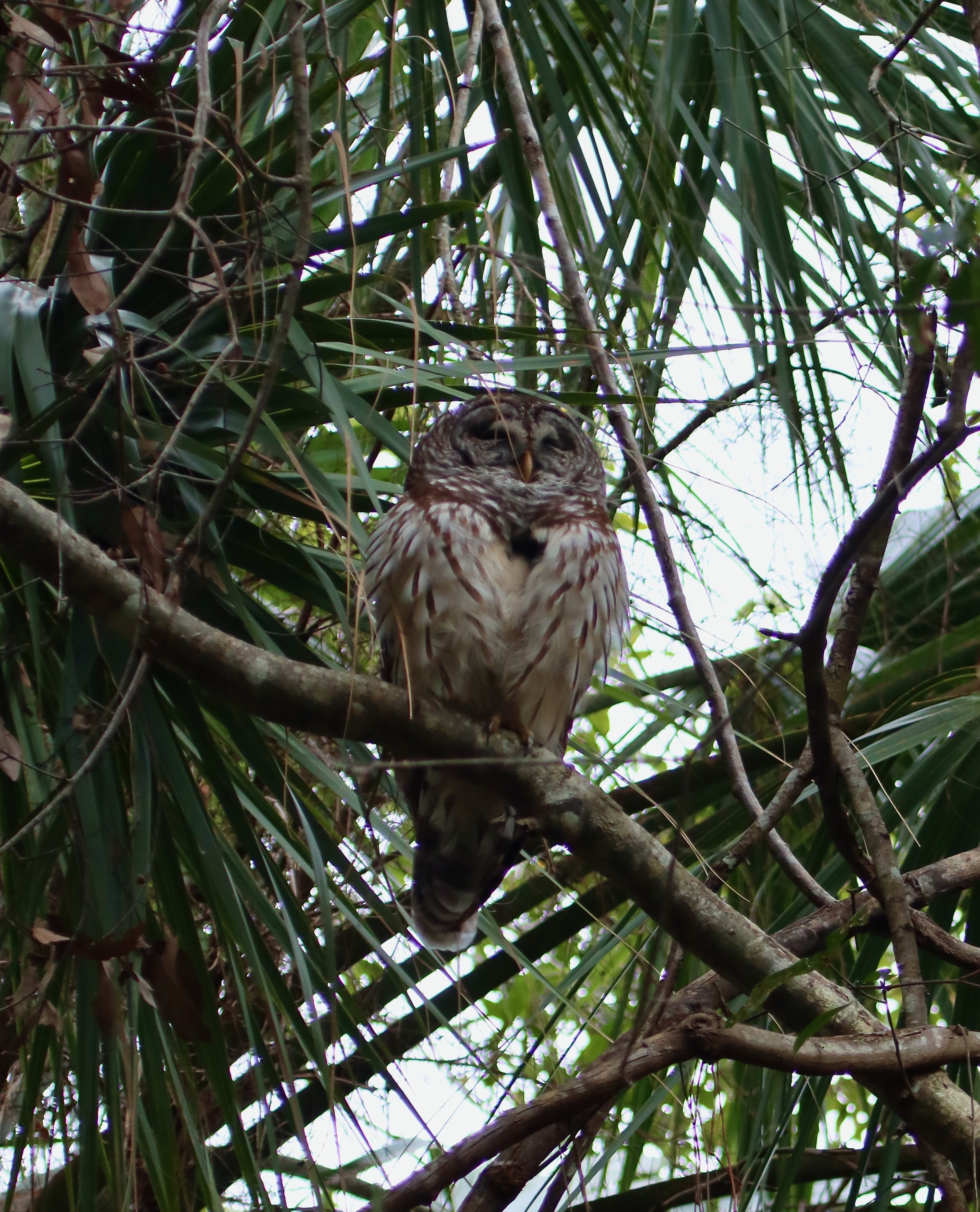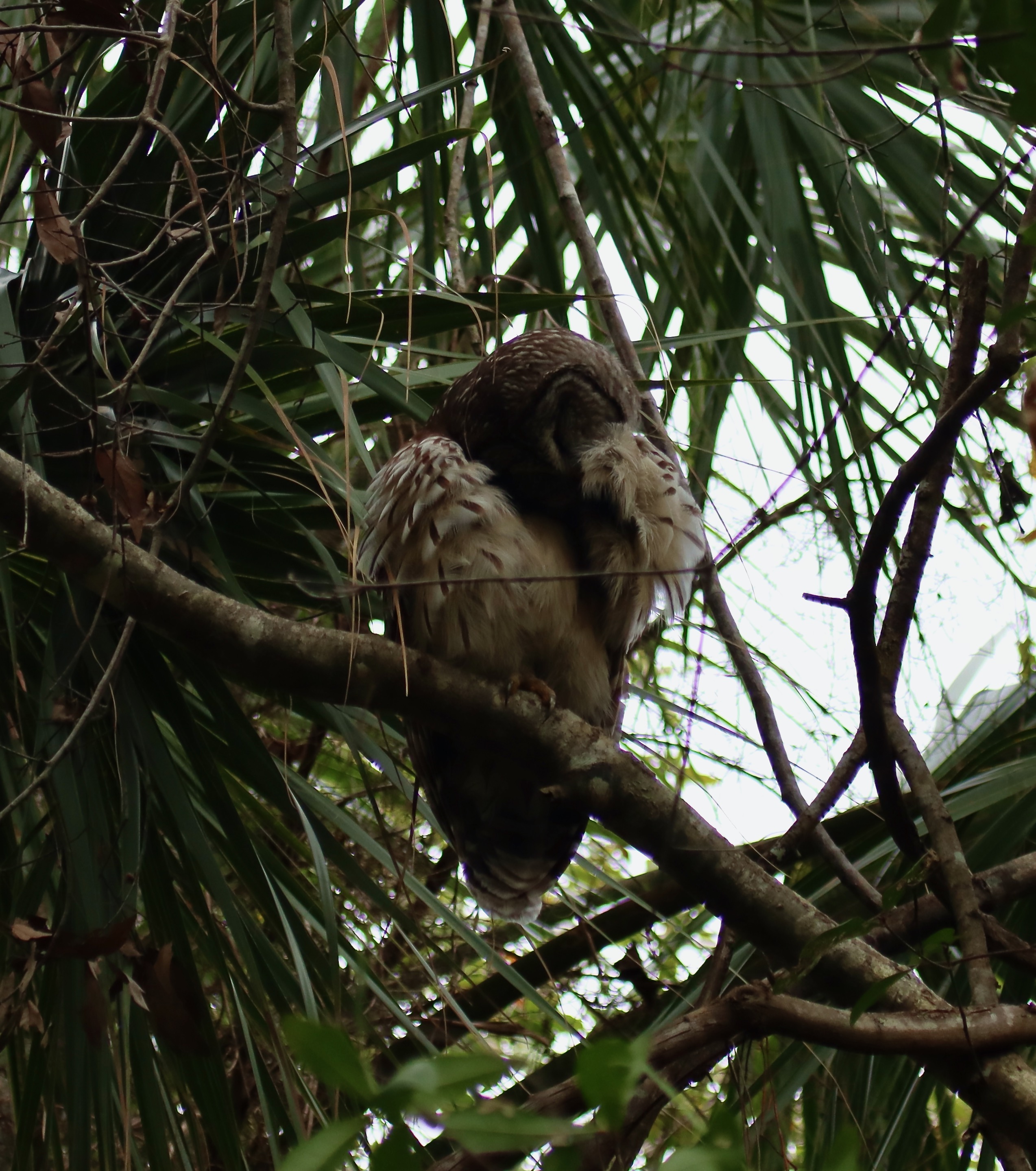 Near the end of the loop I looked up and received the best gift of the day, my first sighting of a Barred Owl (Strix varia). Thankfully, this one was so involved in a preening session that it didn’t mind me taking photos. It was a treat to share a few peaceful minutes together.